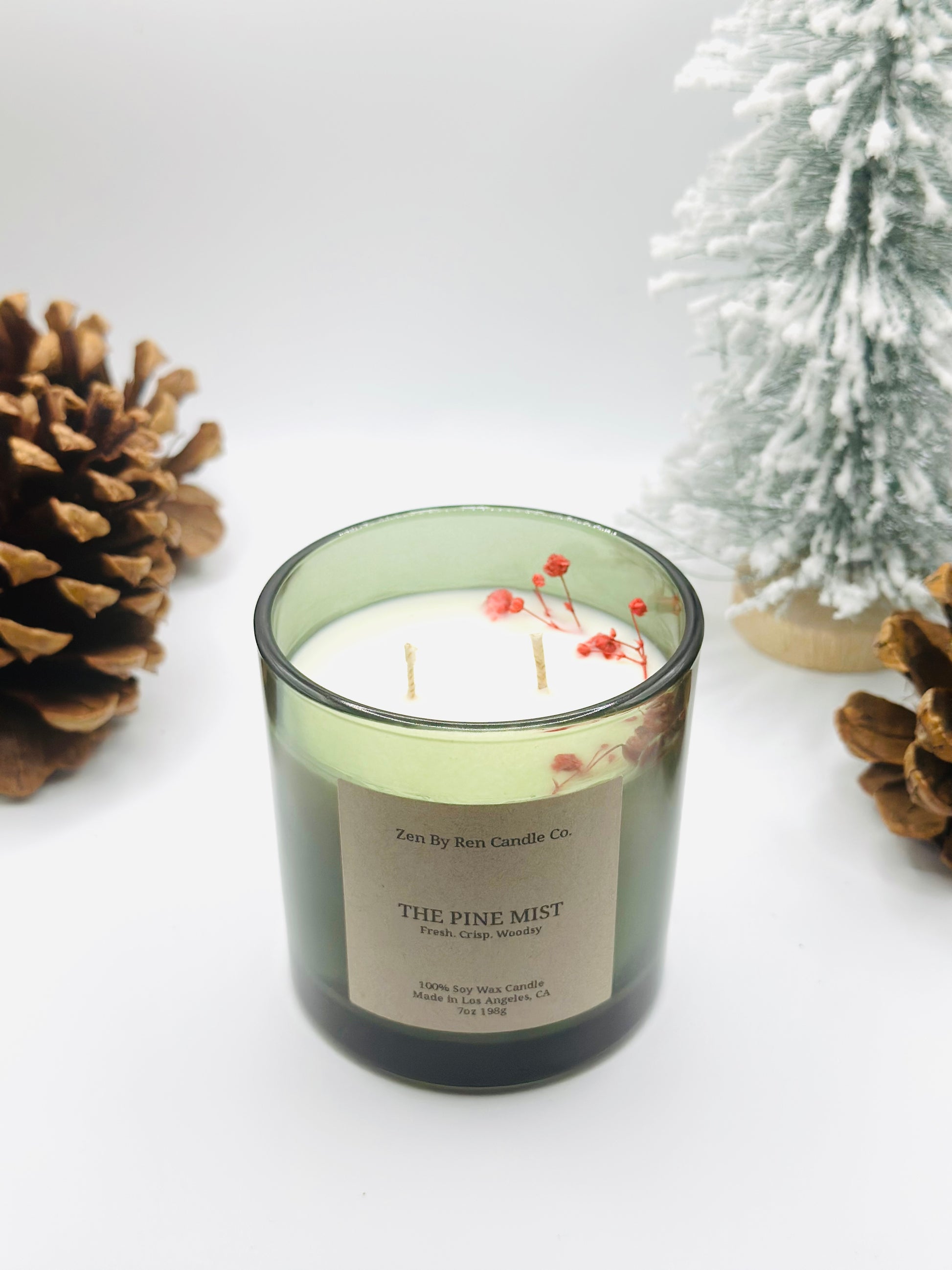 This holiday pine scented candle has a crisp aroma of fresh evergreens, reminiscent of a snowy forest walk. Notes of cedarwood and spice add warmth and depth, making it perfect for cozy winter evenings. Hand-poured in a festive jar, it brings both seasonal fragrance and cheerful ambience to any space.