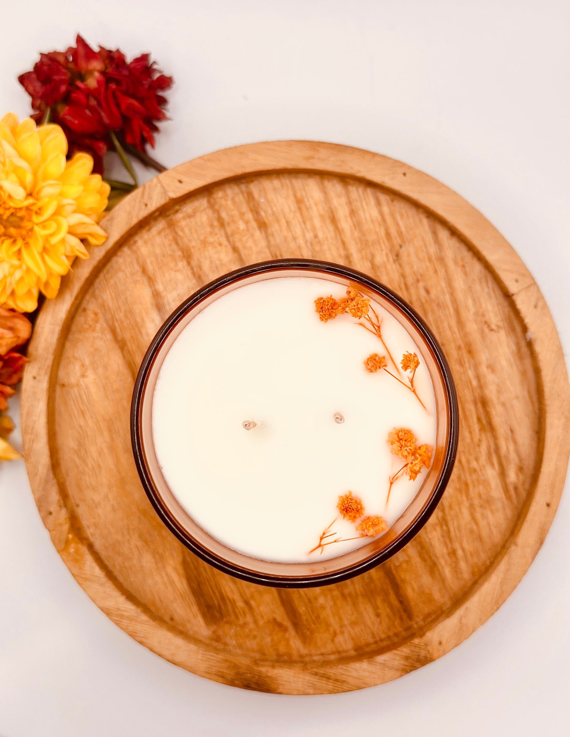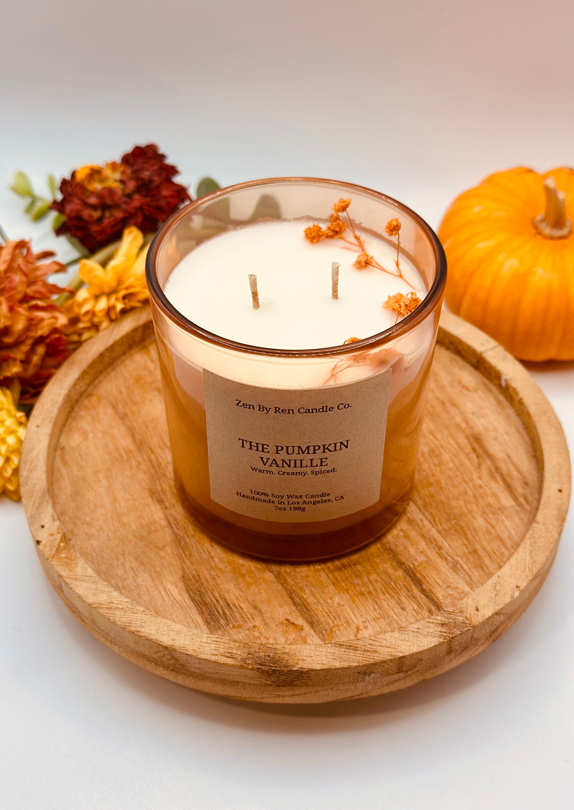 The pumpkin vanille candle is perfect for the fall season. With warm top notes of cinnamon, nutmeg, and clove, it's reminiscent of pumpkin pie fresh from the oven. This spicy warmth is balanced by the creamy sweetness of vanilla, creating a smooth, buttery undertone that softens and rounds out the scent.